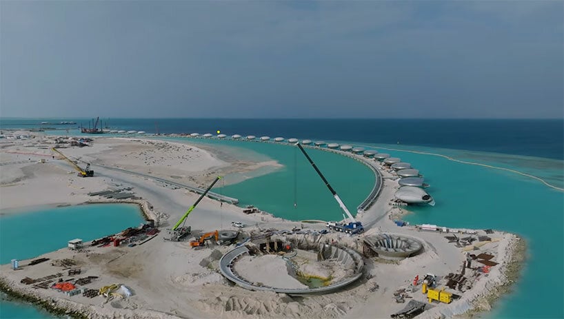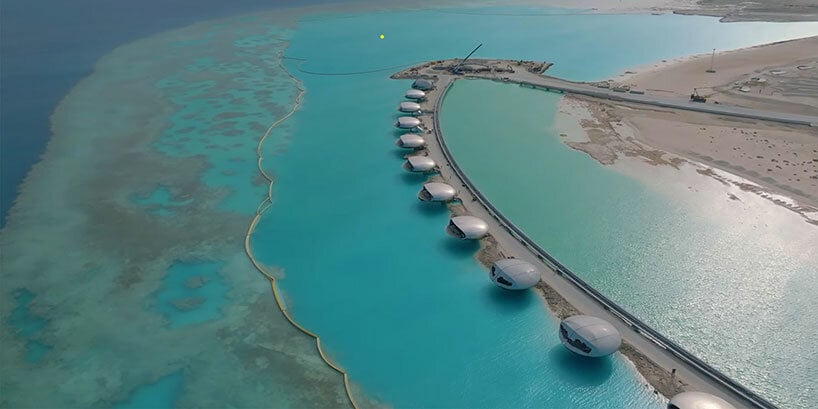 Following the news of the Shura Island construction progress in Saudi Arabia, the updates on the Red Sea Projectcontinue. Recently released footage by the developer showcases Sheybarah Island, where both overwater and inland villas are taking shape. Designed by Killa Design, the architecture firm led by Shaun Killa, these structures emerge as floating orbs that complement the horizon with their reflective mirror surfaces. Meanwhile, the inland structures draw inspiration from the mesmerizing sand dunes.