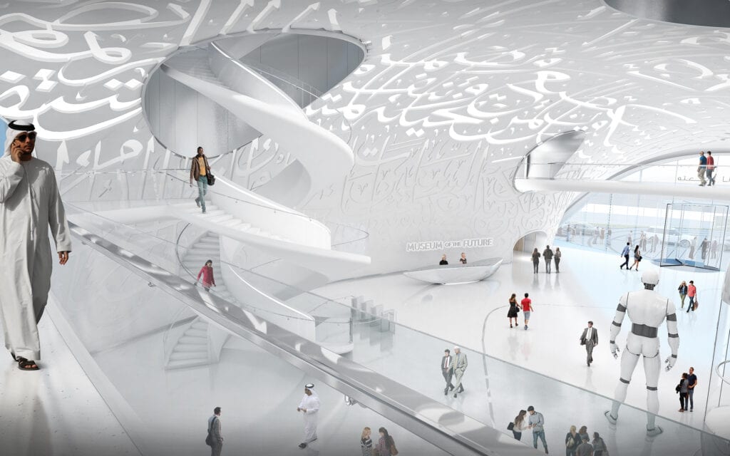 in developing the museum of the future, killa design seeks to create a form that represents dubai’s vision of its future urban fabric and architectural language. while the physical building space of the museum celebrates the innovative potential of the city, the ‘void’ of the torus-shaped building represents the ‘unknown’ and those inventors who seek to navigate the unknown, discovering new horizons and ideas that help guide humanity towards a better future. design partner at killa design shaun killa comments: ‘it’s the people who seek the unknown who invent and discover, they are the ones who will ultimately continue to perpetually replenish the museum.’