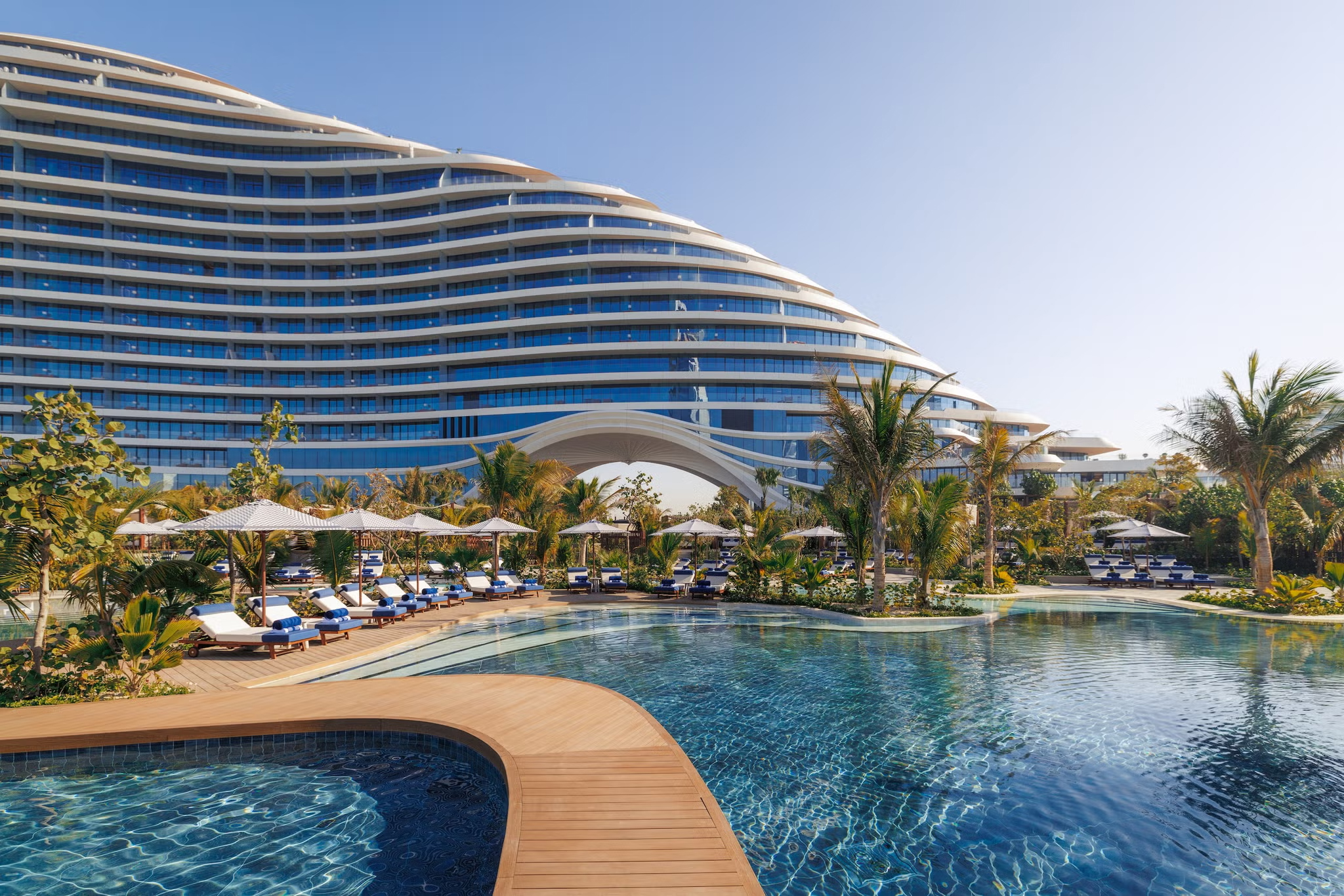 Go read about who built the Jumeirah Marsa Al Arab building, read about the world-renowned chefs that run the restaurants, read about the wonderful spa program. It’s easy enough—that’s all stuff the website will tell you. This is what you actually ought to know: the Jumeirah Marsa Al Arab is elegant and soft in a way we’ve never known the city-state to be. The building was designed without hard edges. Walk through the lobby and notice that the walls aren’t straight lines—they meander back and forth, creating nooks to settle into with a coffee. Outside, there’s always a little spot for a world-class drink by the pool, always an open beach chair in the sun. The result? The whole place feels like it’s yours, even when the in-house nightlife spot is hot and the cars of Dubai’s well-known and well-to-do are valeted outside. The sprawling views of Jumeirah beach, the Arabian Gulf, or downtown Dubai—yours. The marina full of yachts—yours. One architectural choice and somehow it feels as though the property has been here for a millennium and you’re the first person to discover it.