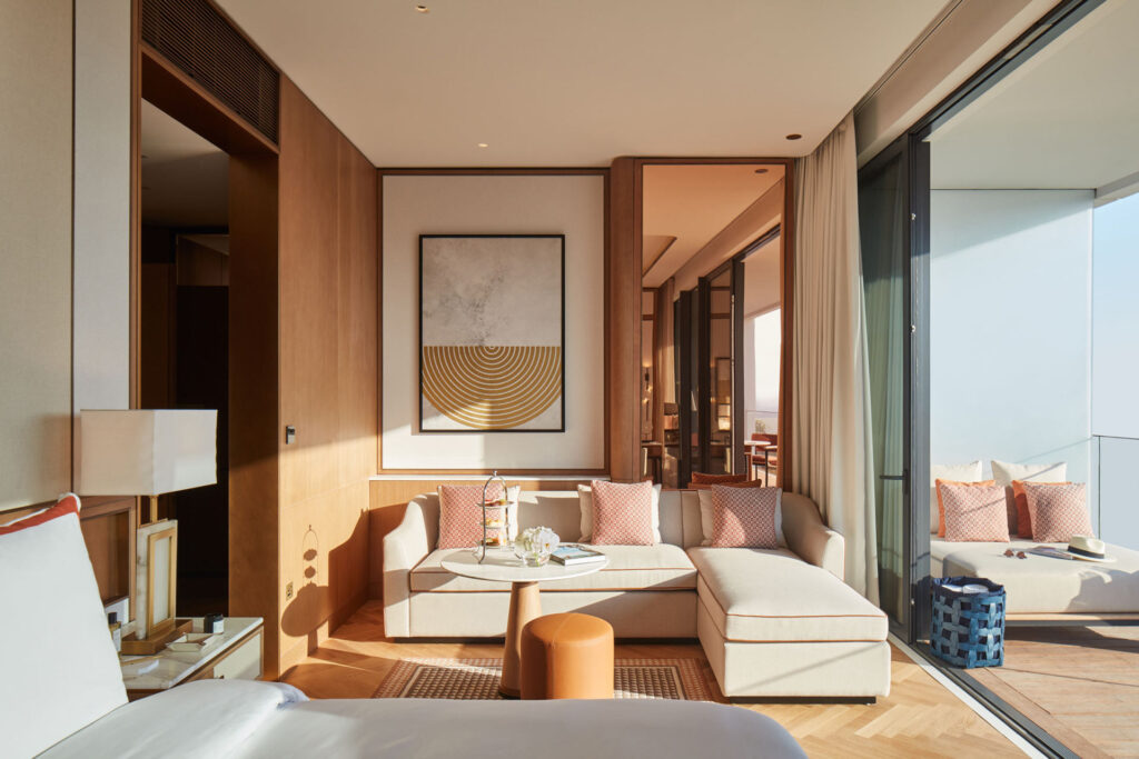 The hotel’s 390 rooms, suites and penthouses all enjoy elevated four-metre-high ceiling heights, with many rooms featuring 11-metre-wide floor-to-ceiling balcony windows, creating a sense of grandeur and space. Contemporary luxury interiors, spacious walk-in closets and bathrooms with a view, are all characteristic of the property’s design. Unique to this resort are a collection of premium suites that follow the contour of the property, each with retractable floor-to-ceiling glass walls, framing 180° views of the Burj Al Arab Jumeirah and the resort’s new superyacht marina.