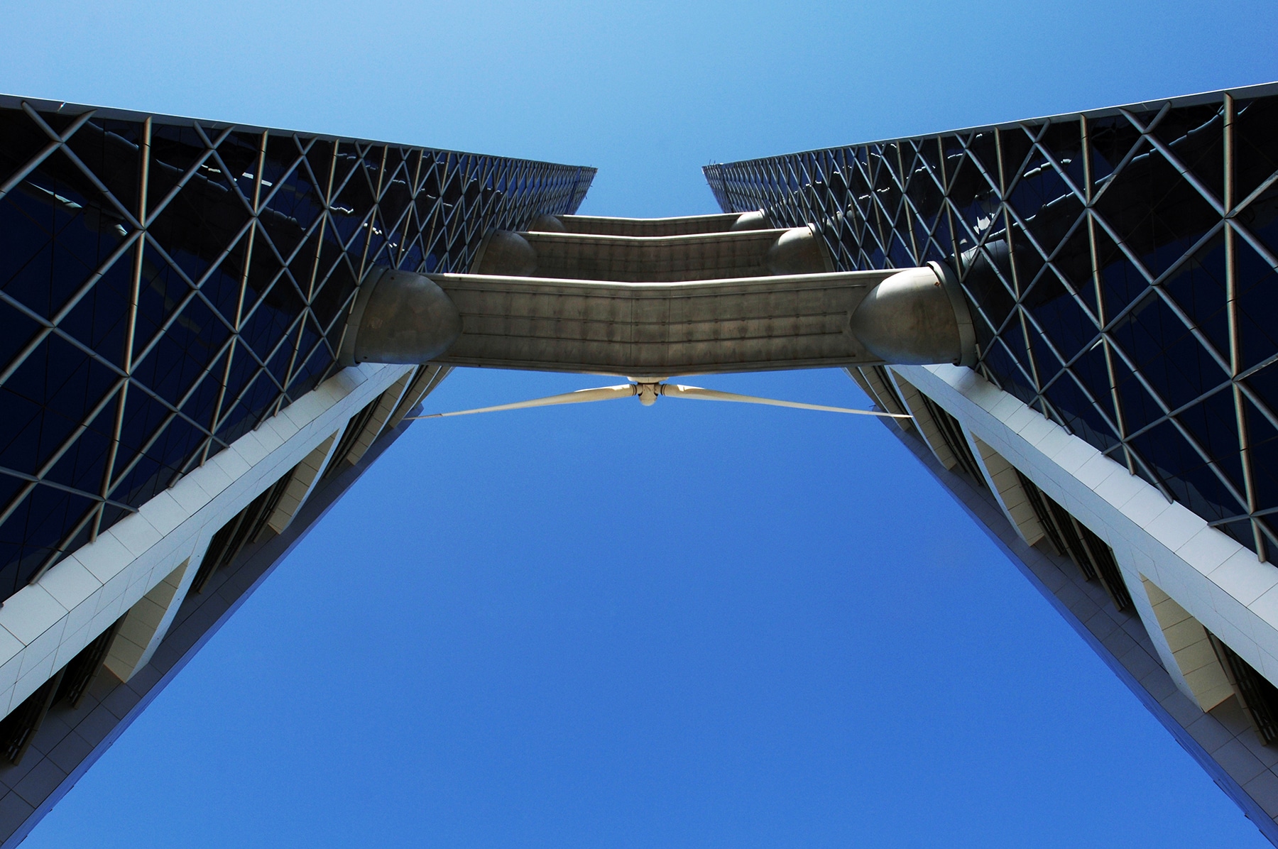 The towers rise to a height of 240 m, and together provide 50,000 m2 of office space over 41 storeys, with a viewing deck on the 42nd level.