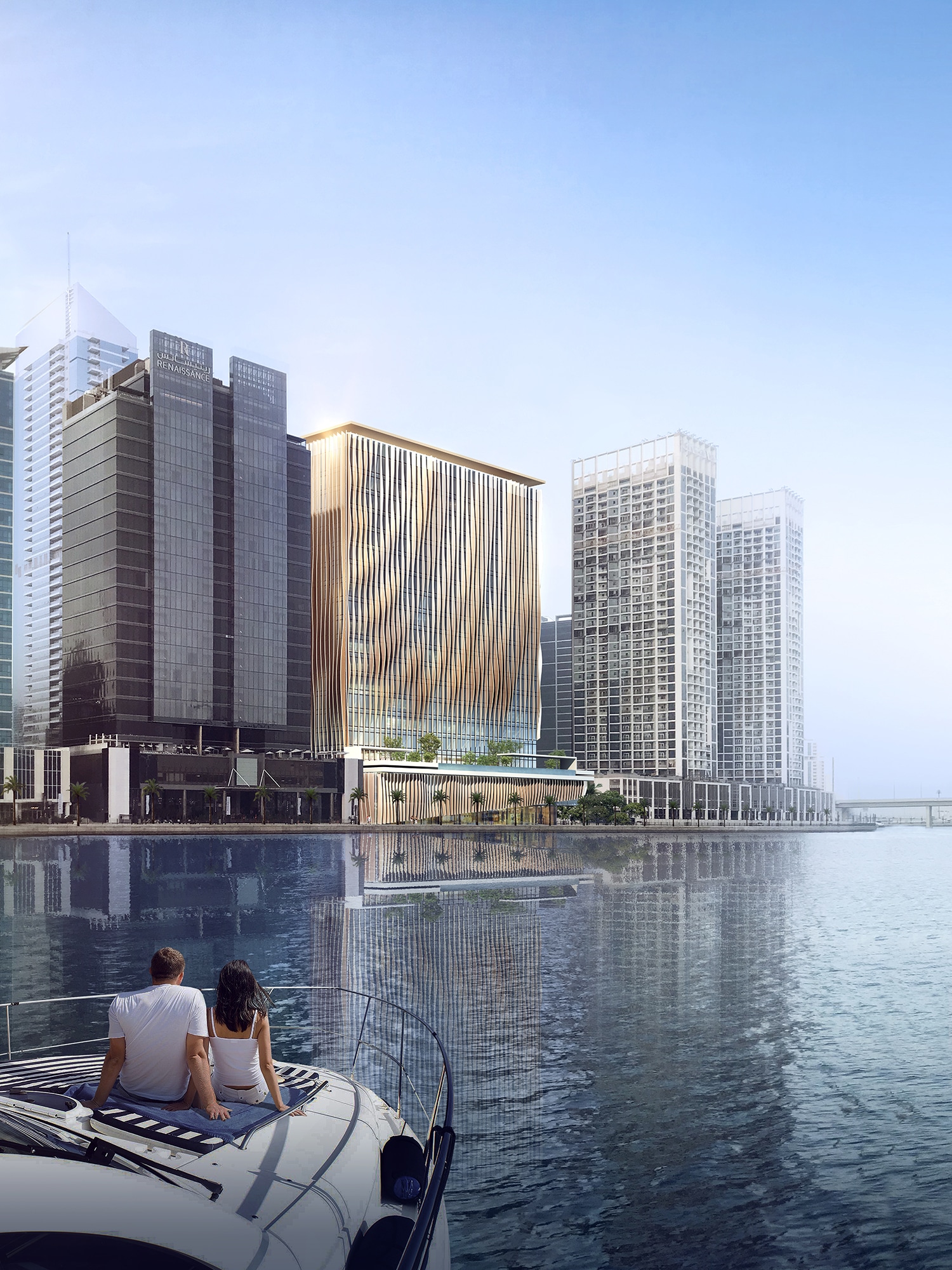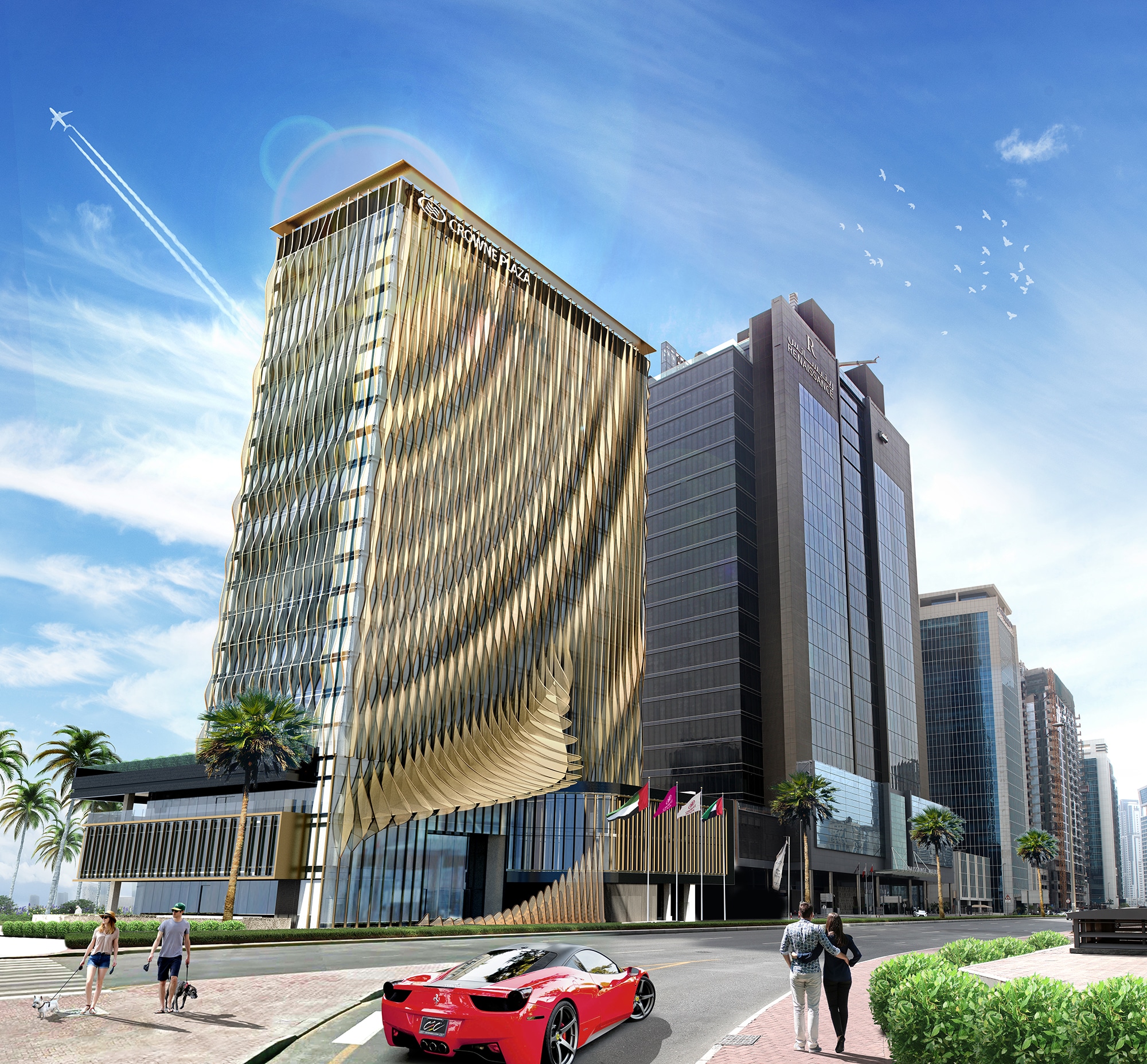 Recognised world-wide as a top ‘business-travel’ hotel brand, Dubai’s latest 5-star Crowne Plaza hotel includes 296 rooms and occupies a prime location within the Business Bay district. However, the design transcends the neighbouring hospitality developments, providing a unique hotel design that creates a transparency into the ground floor to encourage and open the building to the public, and creates a connection between the hotel, the community and the canal, activating the exterior areas and the public realm. With an idyllic setting in an open plot corner, the hotel provides optimal views of golden sunsets over the Dubai Canal and promenade, which bustles with sun bathers, cyclists and joggers.