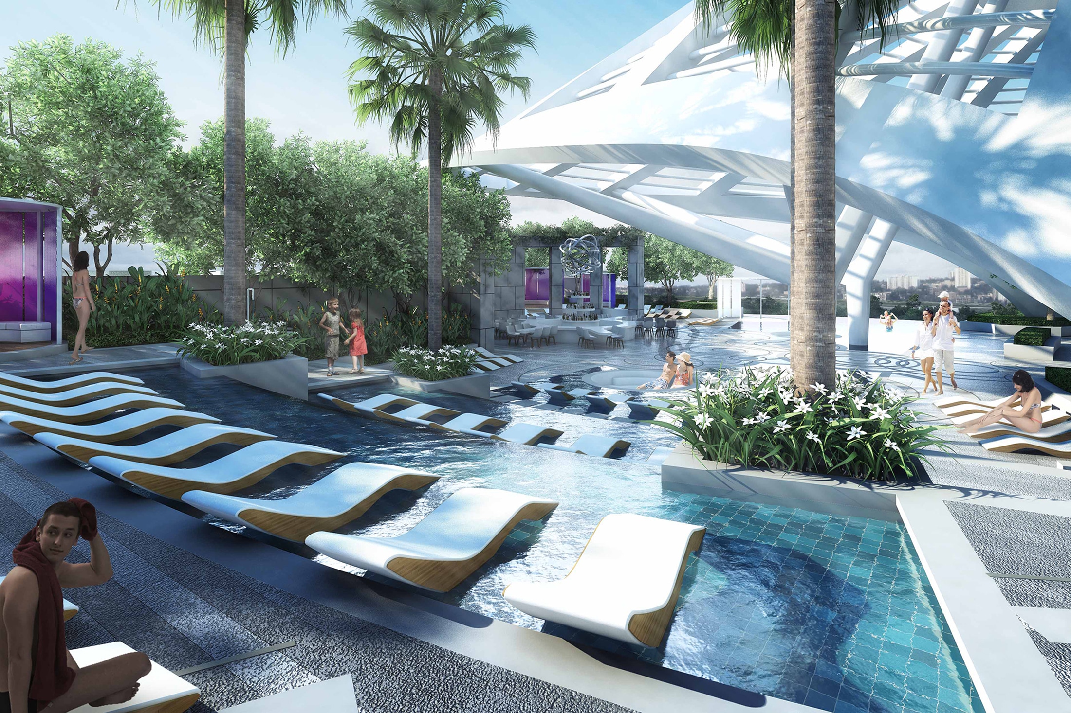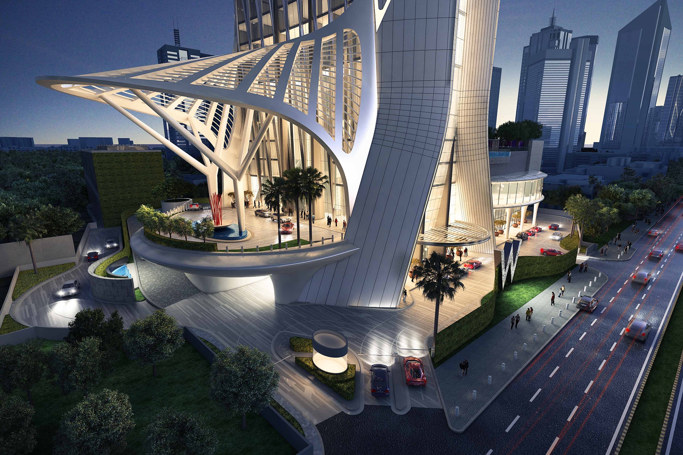 The hotel portion of the tower includes 384 hotel rooms which cater to the ‘W brand’ standards. The tower also includes 5,500 m2 of high-end retail and commercial space and 9,000 m2 of office accommodation.