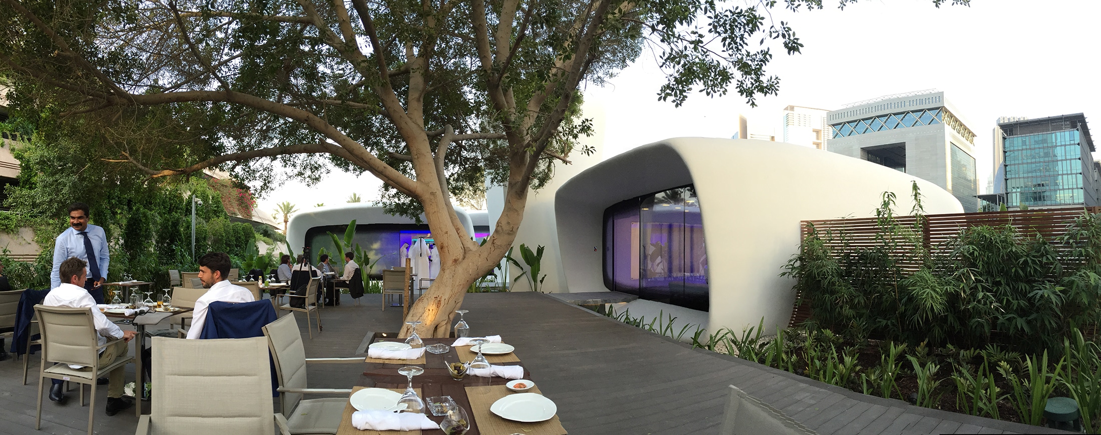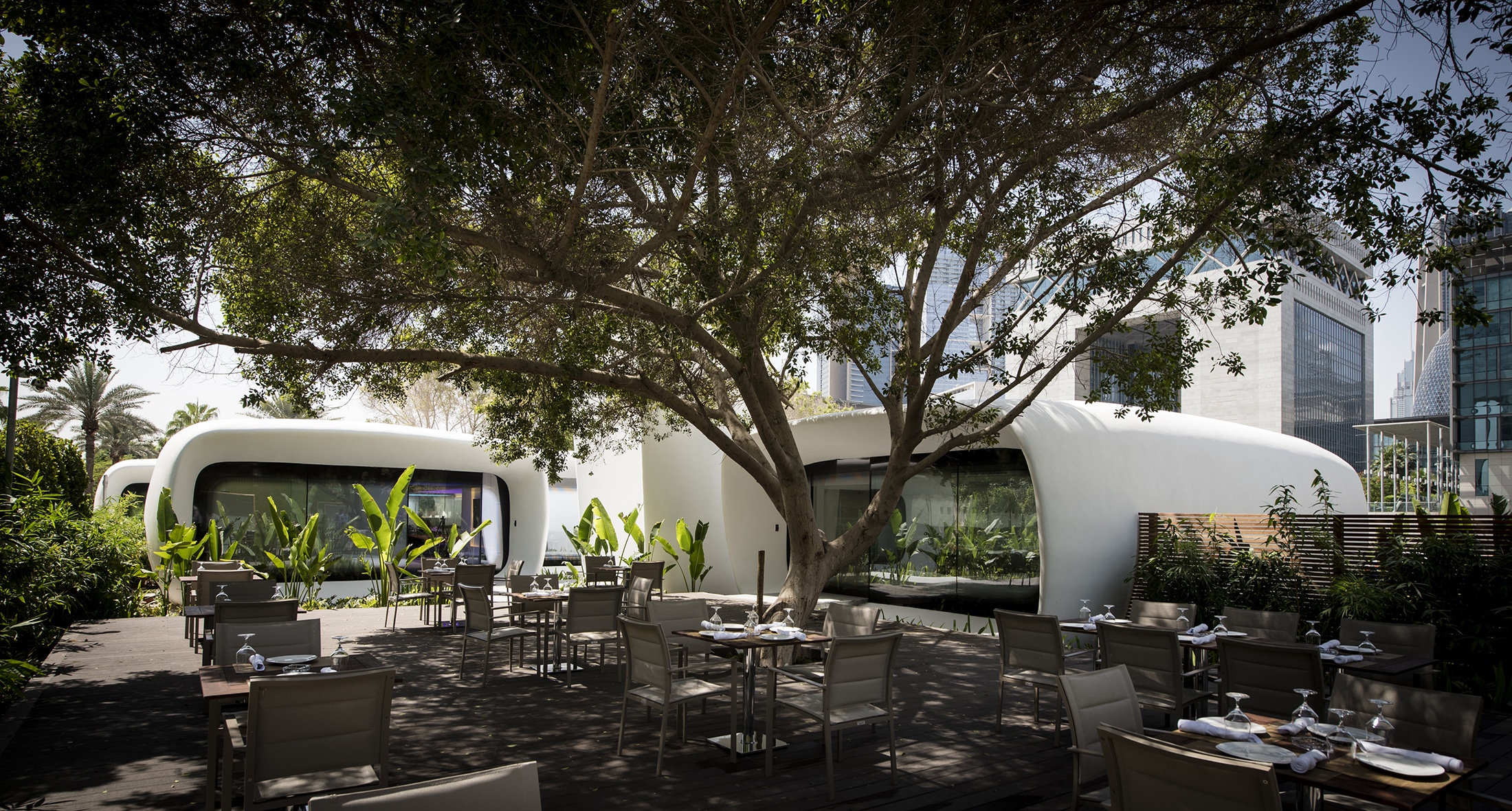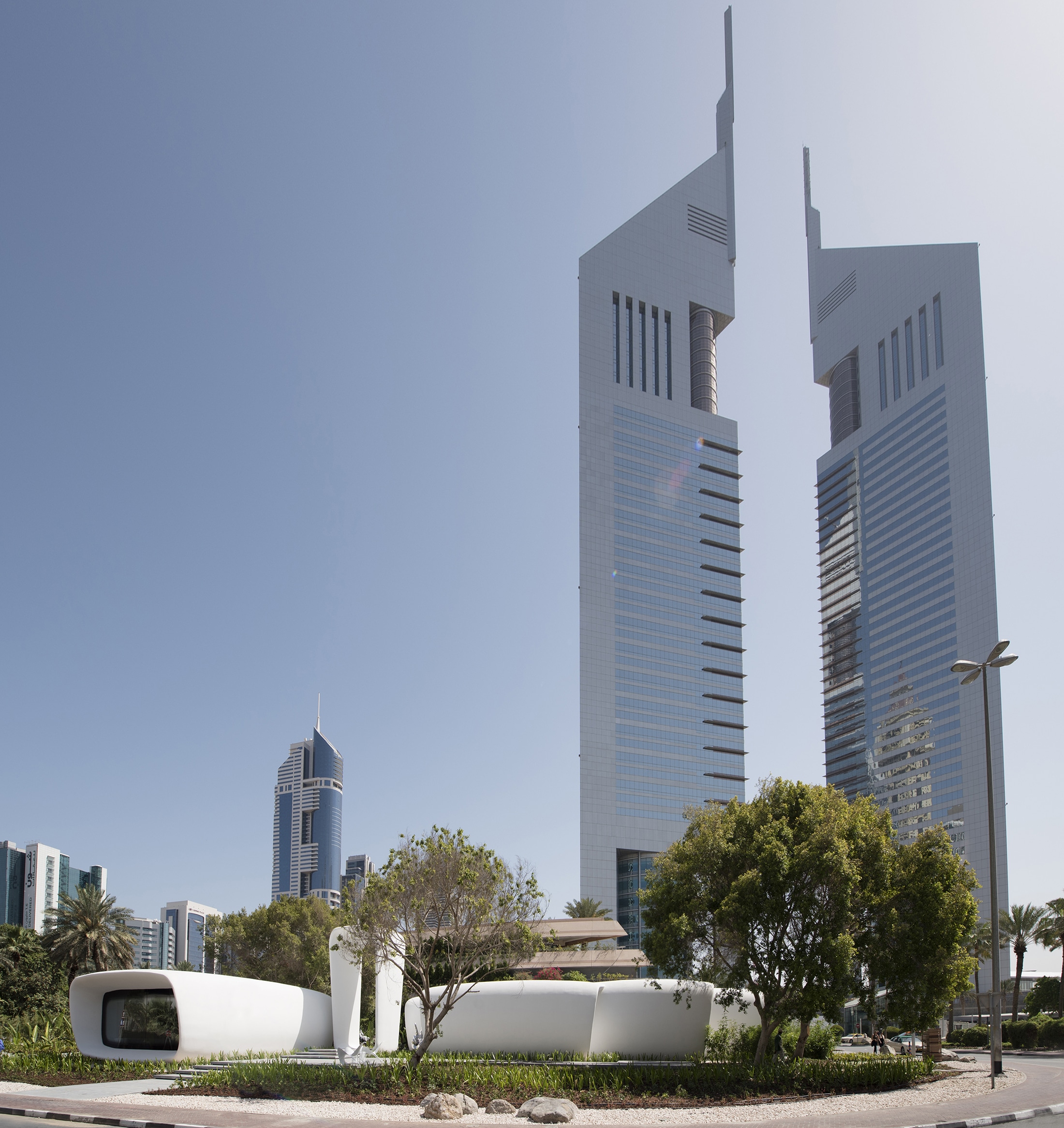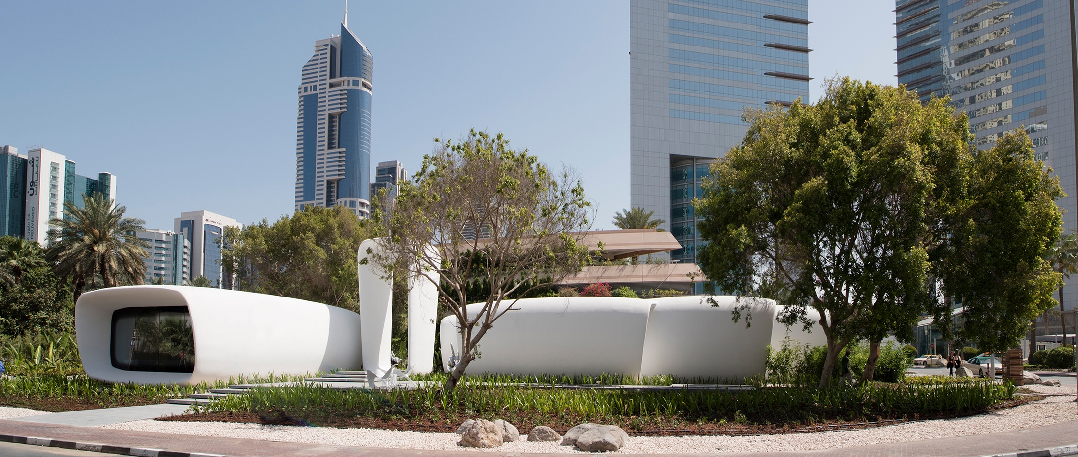 The Office of the Future is the world’s first fully functional and permanently occupied ‘3D printed’ building. The pavilion acts as a temporary home for the Dubai Future Foundation, as well as an exhibition space and incubator for future emerging technologies in the region. The entire structure was ‘printed’ in concrete using an additive manufacturing technique.