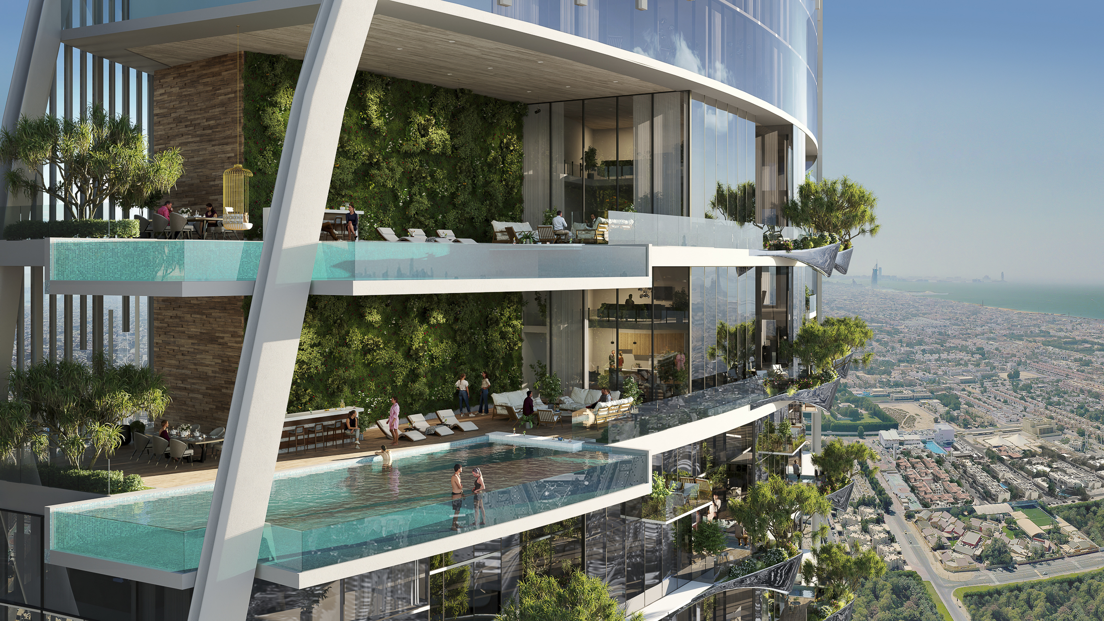 Located on the edge of Safa Park and surrounded by Dubai’s most sought-after neighbourhoods, this innovative project showcases two striking towers rising to a height of 257 meters. Safa One de GRISOGONO includes a collection of luxury apartments, duplexes, and penthouses, all designed as ‘Villas in the Sky.’ This new design philosophy transcends conventional luxury, integrating nature into every aspect of its architecture. Independent sky gardens on each level promote wellness and redefine urban living, transforming the development into a breathtaking oasis that blends natural beauty with modern elegance.